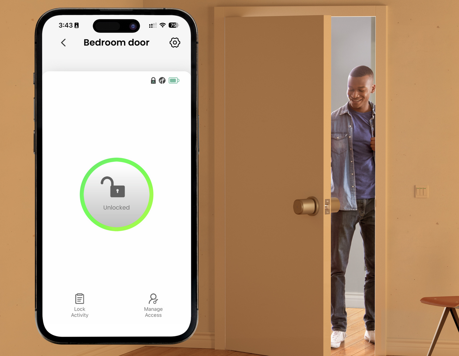 You can seamlessly control and monitor your smart door knob from the palm of your hand, granting access to your home with a simple tap and ensuring your security is always at your fingertips.