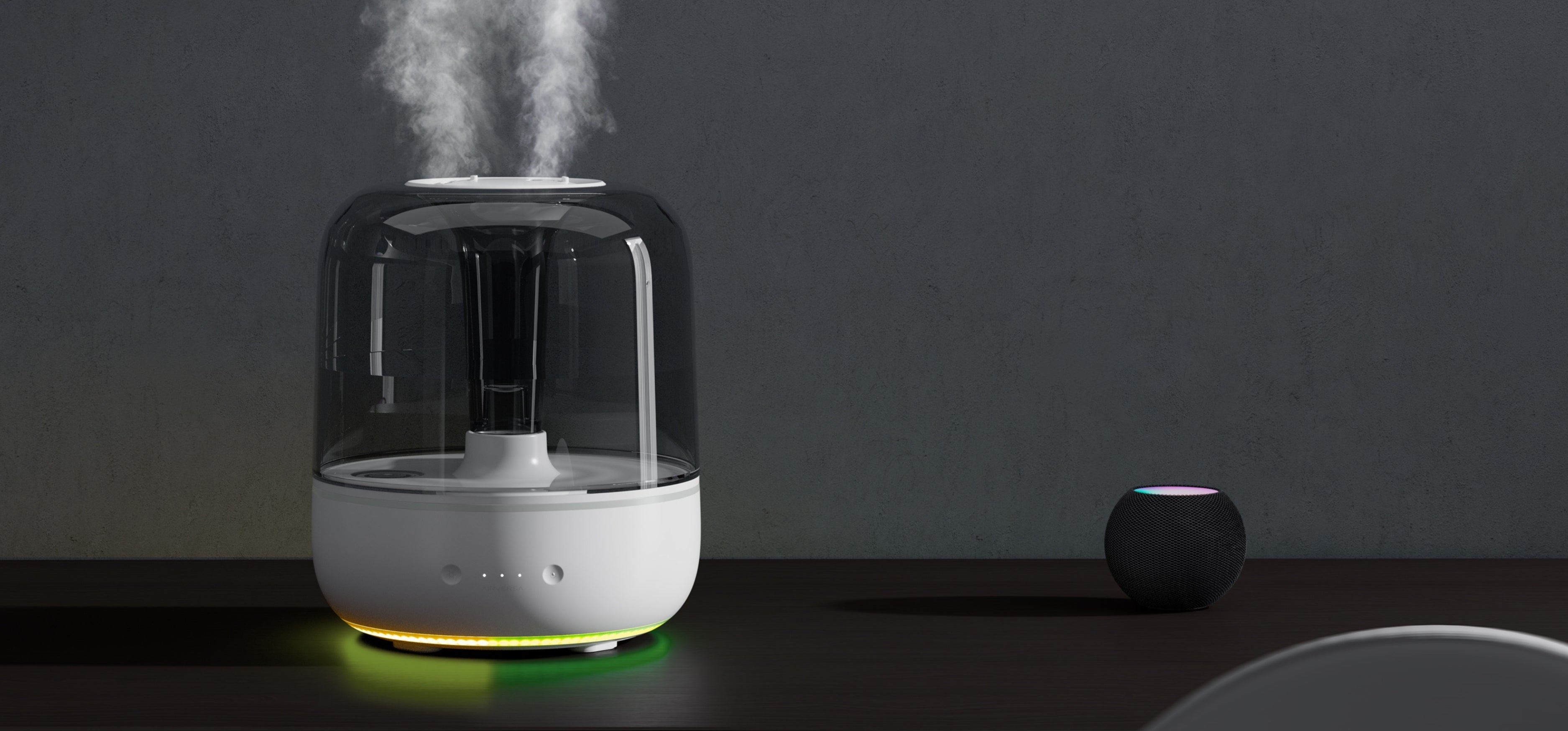 It's the first ever smart air humidifier for Apple HomeKit using THREAD technology. This technology uses the latest wireless protocol for the smart home. Automise Humelle through the native Sleekpoint app or control it with your voice through your favorite assistant.
