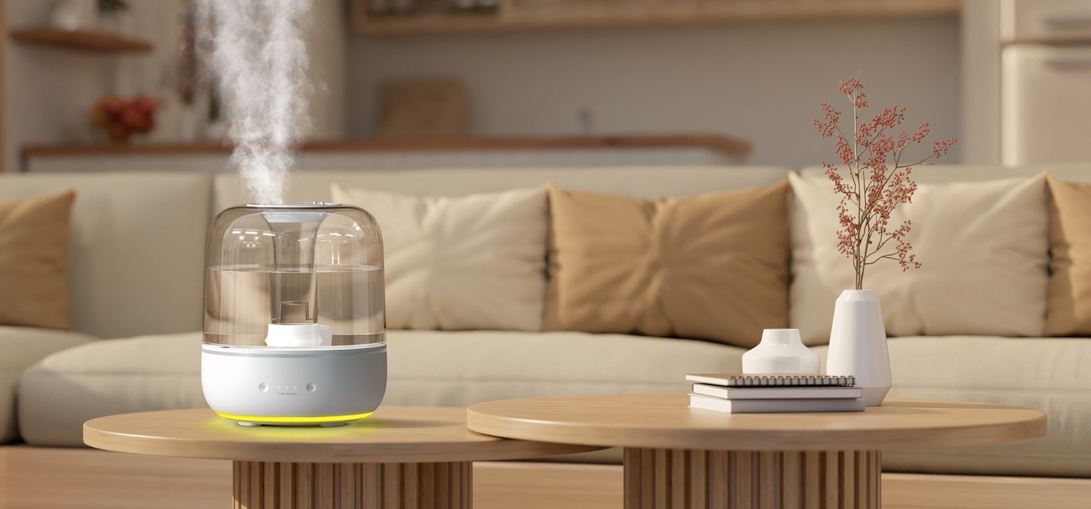 The Humelle Humidifier creates a healthier environment for those suffering from allergies, chronic rhinitis or dry skin. This device is perfect for heated or air-conditioned offices. It can help enhance your productivity by keeping the air in the room fresh and moisturized.