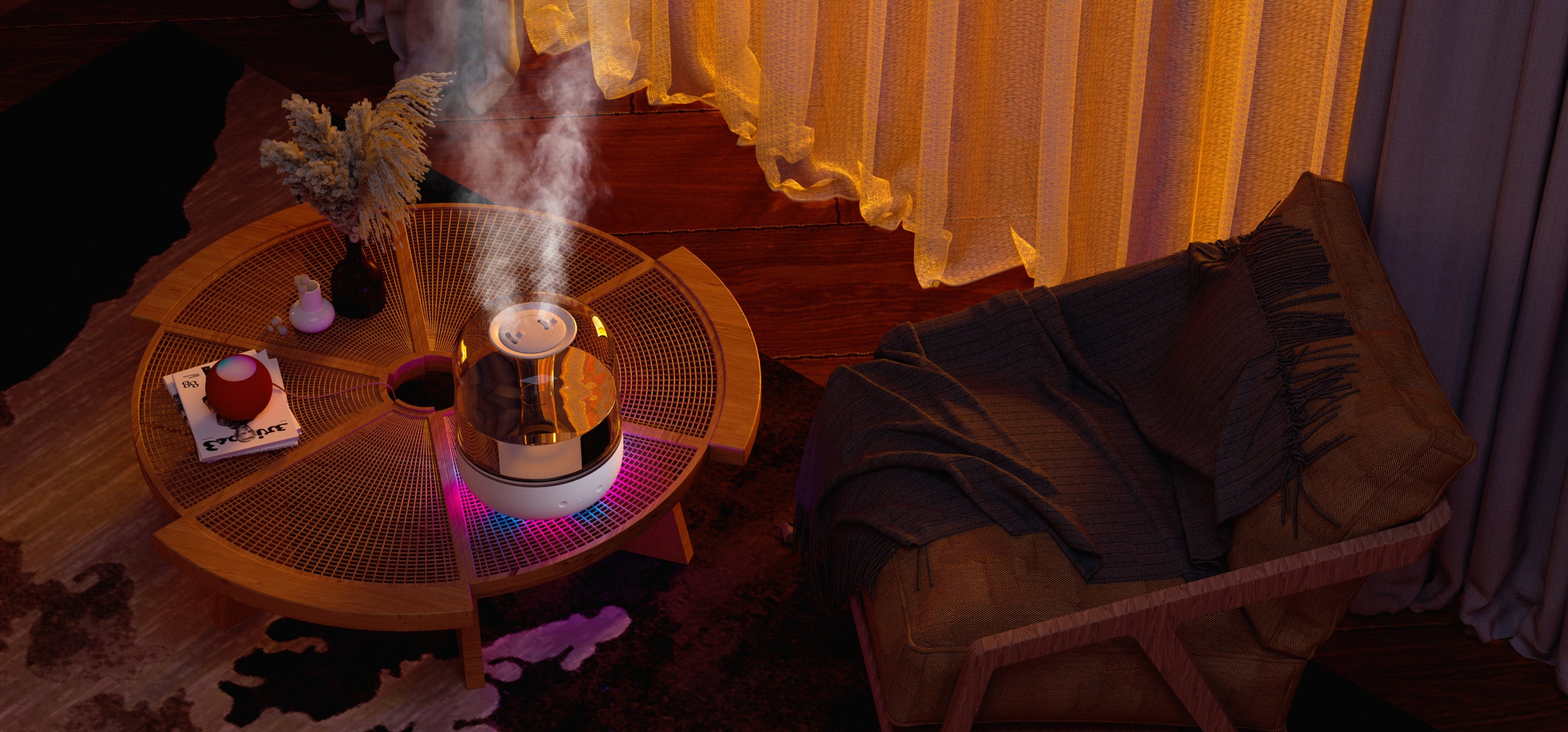 The Airversa Humelle is their latest innovative product designed to optimise the humidity levels in your home, while providing a customisable and visually appealing atmosphere with its smart ring light feature. With its advanced sensors, Humelle can detect the current humidity levels in your home and adjust its output accordingly to maintain a target humidity level of your choosing. This helps to prevent dry air, which can lead to issues like dry skin, coughs, and other respiratory problems.