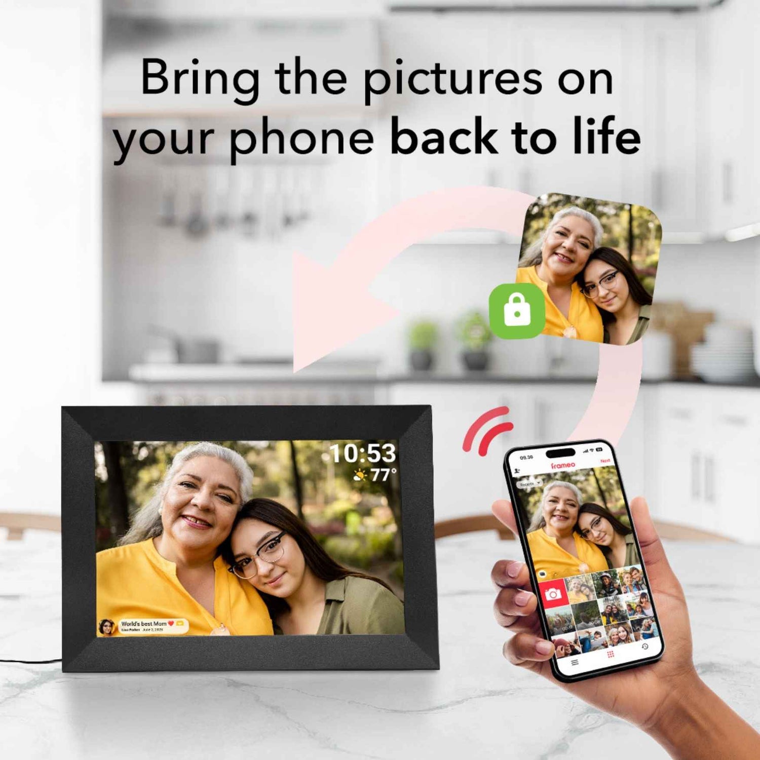 Surprise your loved ones with a digital photo frame you can send pictures to- a gift that is sure to bring joy. Share the photos and videos of your big moments and all the wonderful everyday experiences that fill you and your loved ones with joy. Be prepared to experience how a digital frame for photos and videos makes a really personal gift across generations.