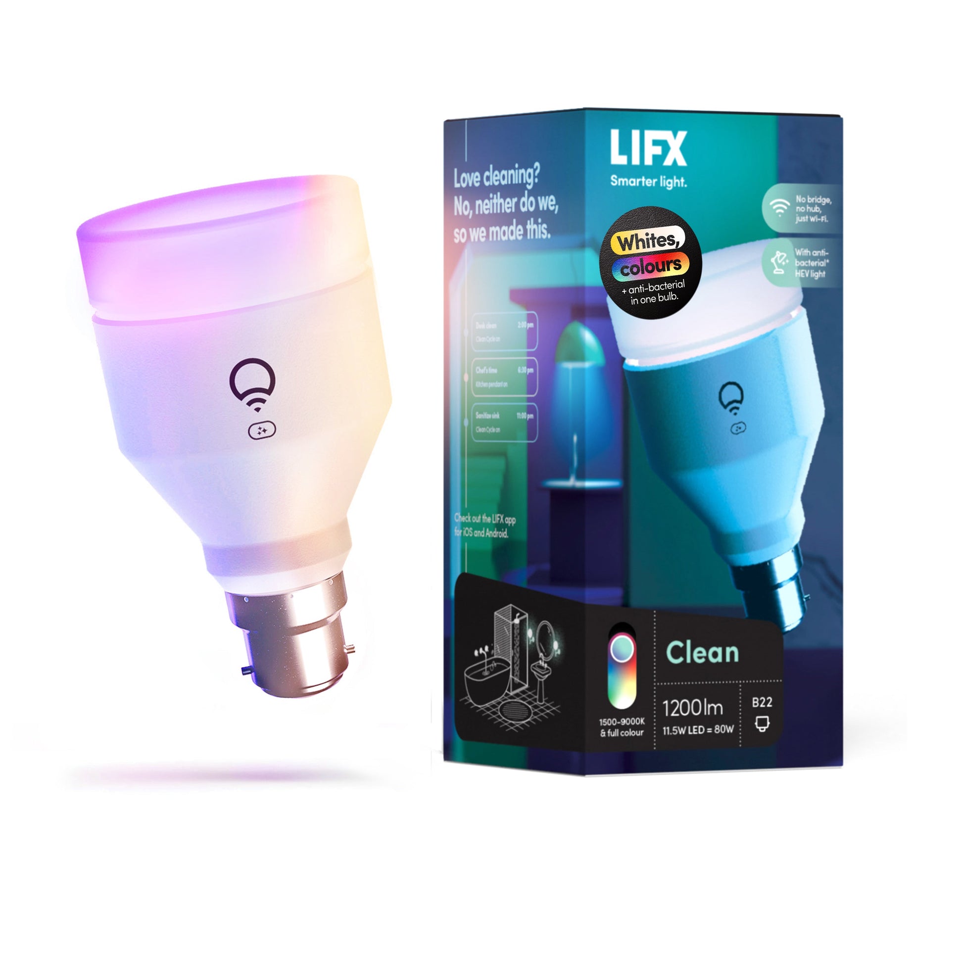 LIFX Clean is the world’s first antibacterial, germicidal smart light. It has all of our standard smart light functionality – billions of colour options, voice control capability, and smart home automation – plus it doubles as an advanced cleaning tool.